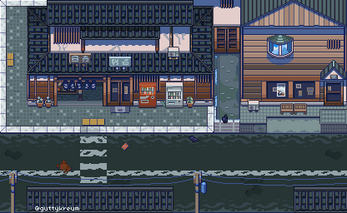Thanks a lot! For the pixel art illustrations like the one on the right, I use Google Maps Street View to find references and Aseprite to illustrate it. I actually do have a scrolling version of the clouds, just not with that specific art yet. It is included in my Gothic Castle tileset.